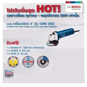 สินค้าอาจมีการเปลี่ยนแปลงราคาและโปรโมชั่น โปรด เช็คราคาล่าสุด เครื่องเจียร์ BOSCH 4 นิ้ว รุ่น GWS 060 >ที่นี่